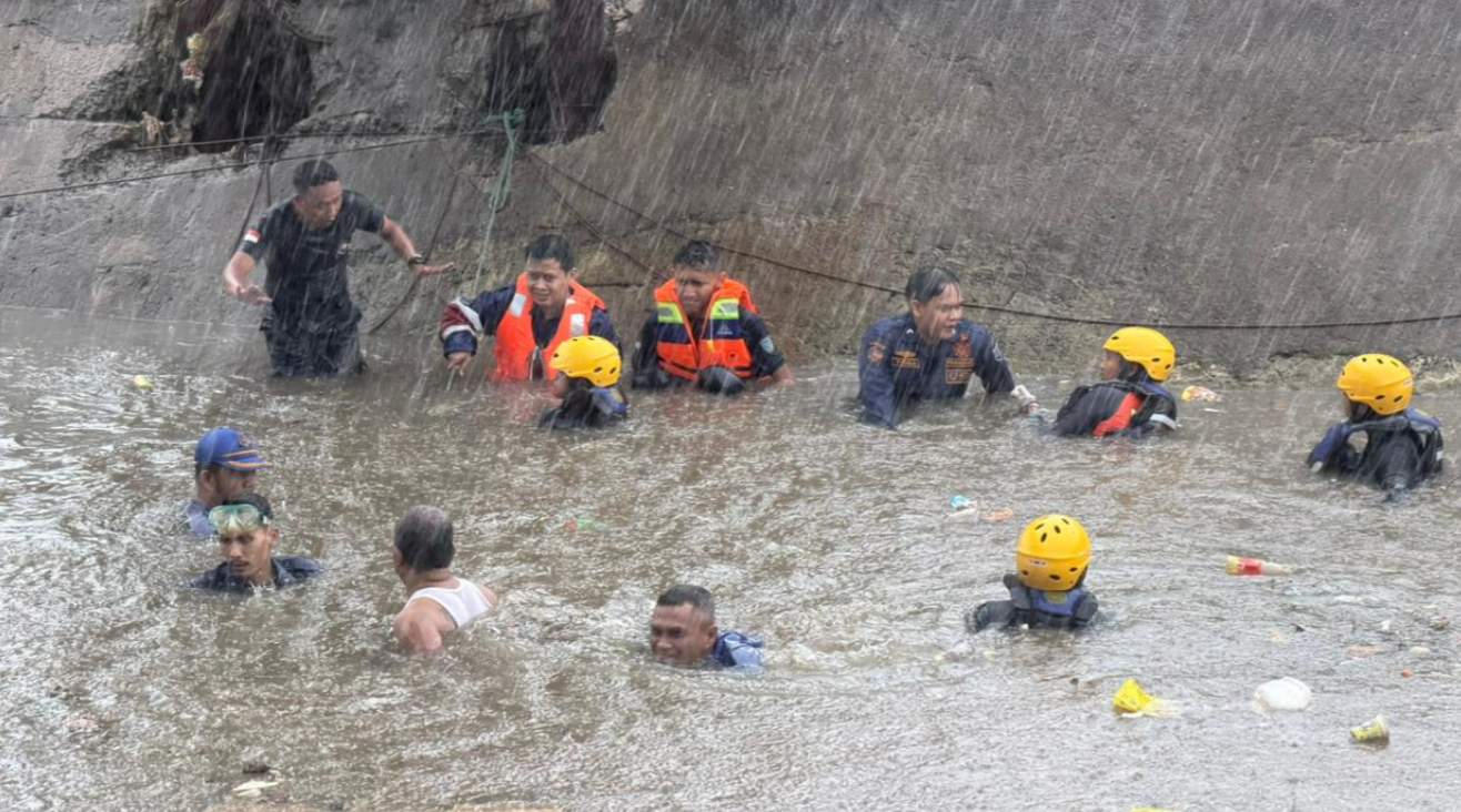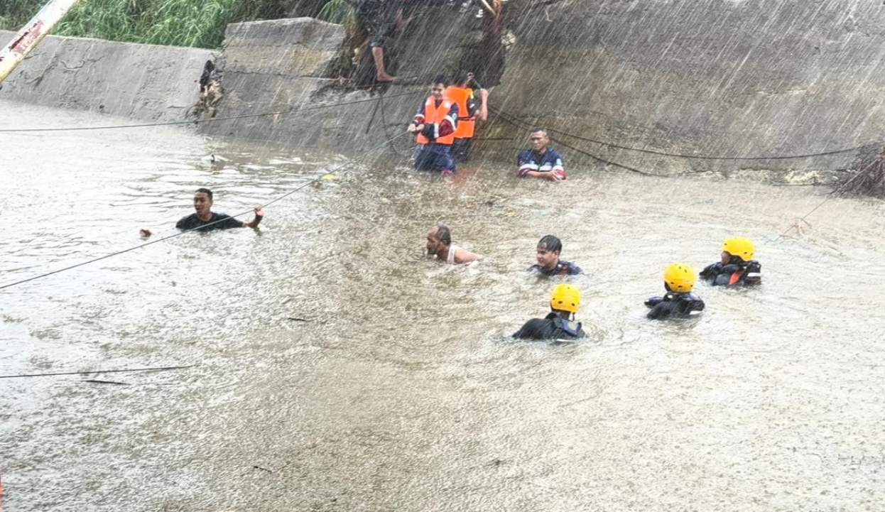 Tim SAR saat Mencari Bocah yang Hilang di Sungai Buntung, Kelurahan Lebak Bandung